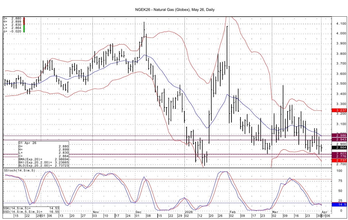 Notable in Monday's NG futures settlements on the CME is the drop in the December 26 through February 27 strip. They fell by 15.6 to 16.9 cents versus the May futures falling by only 03. cents and the June contract declining by 2.9 cents. The decline in the winter strip is attributed to ceasefire hopes in the Iran conflict, which will hopefully ease concerns over supply for next winter. This pattern of the next winter strip losing ground to the front has continued today. The Dec 26 through Feb 27 strip is currently down 8.0 to 9.5 cents, versus May being down 3.7 cents.