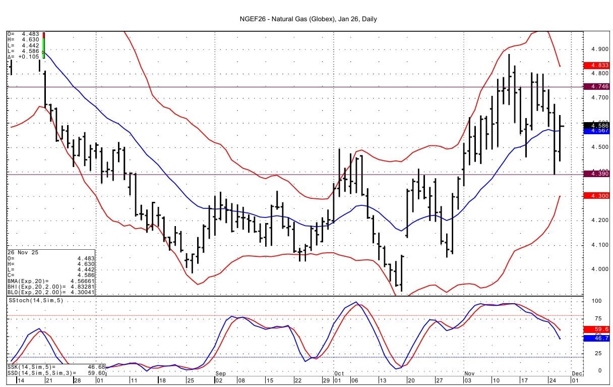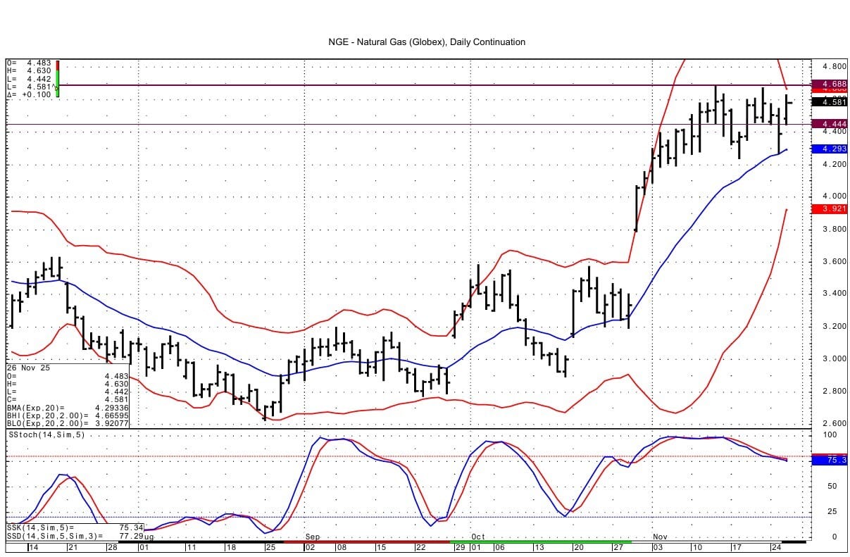 NG futures are higher today as January becomes the spot futures contract. Cold weather in the U.S. Midwest is seen supporting prices as is the continued record LNG feed gas volume.