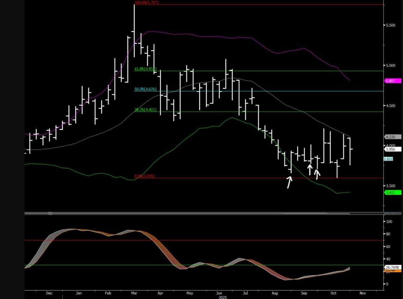 38.2% Fib: 4.421 → likely area for CTA stops.
